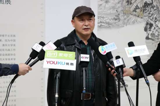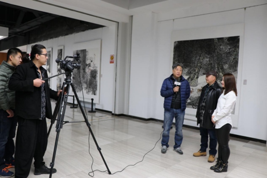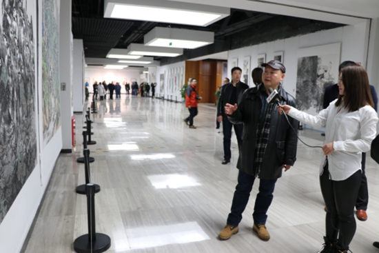 畫家杜平在鄭瑰璽畫展現場接受采訪