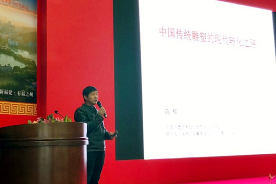 中國非遺藝術設計研究院副院長,清華大學美院雕塑系副主任、副教授陳輝先生在論壇上發言