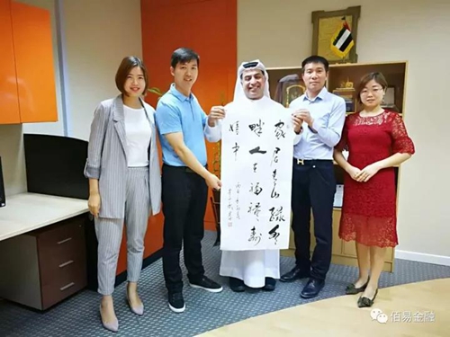 為落實和嫁接國家一帶一路政策,2017年11月20至27日,山東省企業文化學會常務副會長兼秘書長朱文秋、山東佰易股份董事長唐愛武等一行數人赴阿聯酋就一帶一路中的國際貿易、國際金融、加工進出口、城市基礎設施建設、文化品牌傳播等問題進行考察交流。阿聯酋山東商會會長曲巖、秘書長徐紅熱情接待了考察團,并詳細介紹迪拜當地情況。