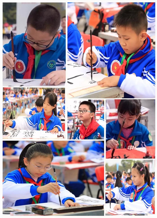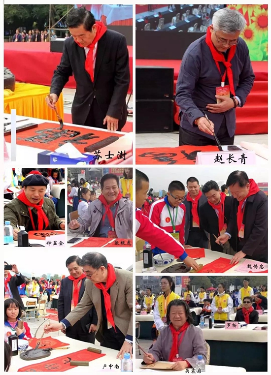 肇慶市龍禧小學小書法家們與100位中國書法名家、中國書協理事同臺潑墨揮毫