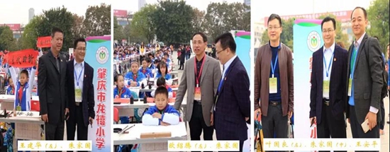 肇慶市龍禧小學朱家國校長向書法家們和端州區政協主席歐紹騰、肇慶市委宣傳部王建華、肇慶市教育局葉國良、中國非遺中國文房四寶專家委員會主任王安平等同志介紹書法進課堂的成效。