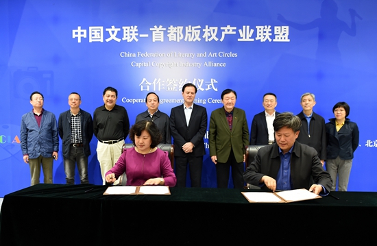 中國文聯是黨領導的文藝界人民團體,是黨和政府聯系文藝工作者的橋梁紐帶,是繁榮發展社會主義文藝的重要力量。首都版權產業聯盟是政府支持設立的公益性權益保護組織。雙方的合作是中國文聯探索建立社會化維權服務新格局,實現資源共享、優勢互補,為廣大文藝工作者提供更加專業的維權服務的重要探索和積極嘗試。通過與首都版權產業聯盟合作,中國文聯可以為文藝工作者提供版權登記代理、版權使用網絡監測、版權糾紛調解等服務。