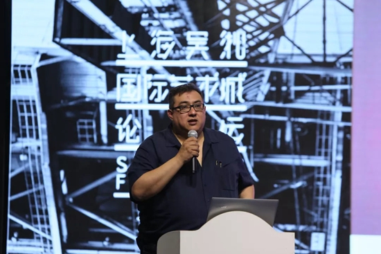 上午最后一位發(fā)言者是夸特莫克.梅迪納,他是2018年上海雙年展的主策展人。他主要介紹了他作為策展人所參與的一些有關(guān)工業(yè)遺產(chǎn)復(fù)興的雙年展項目,并闡述了他的策展理念和策展過程。他覺得要用當代藝術(shù)的方式將這些工業(yè)遺存的未來呈現(xiàn)出來,另外要找到讓這些舊建筑適應(yīng)未來生活的方法。