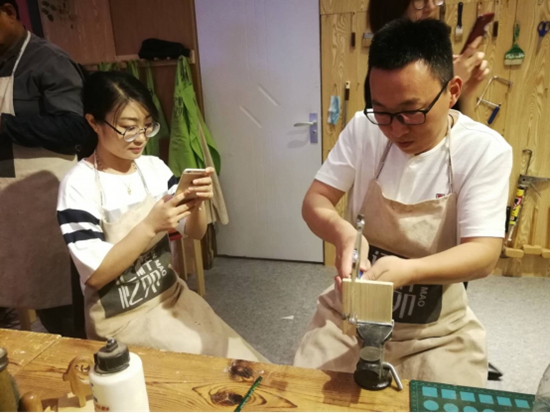 而這一次我們?yōu)槊课惑w驗者提供了木筷、手機架、小板凳等多種產品的體驗,看每一位體驗者都認真的在榫卯大師的指導下使用各種工具制作隼和卯,又是削、又是磨、又是小心的試驗接口、不行再重新加工,而一個成品能完整展現(xiàn)出來后的喜悅和滿足感,對于我們每一個從事非物質文化遺產傳承工作的人來說這都是莫大的幸福和榮譽,所有參加活動的體驗者都希望達匠能更多的組織此類非遺體驗活動,這是他們難得的人生體驗。