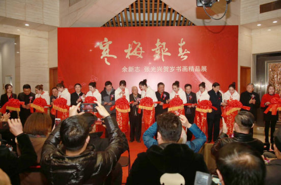 2019年1月19日下午15:00,由陶行知教育基金會、天雨齋藝術工作室主辦,無錫贏享花網絡科技有限公司、天雨飛翔(北京)文化傳媒有限公司承辦,中國沫若書畫院石竹齋藝術工作室、青島求實職業技術學院、張光興(北京)藝術工作室協辦的“寒梅報春”——余新志、張光興賀歲書畫精品展開幕儀式在北京炎黃藝術館一層隆重開幕。