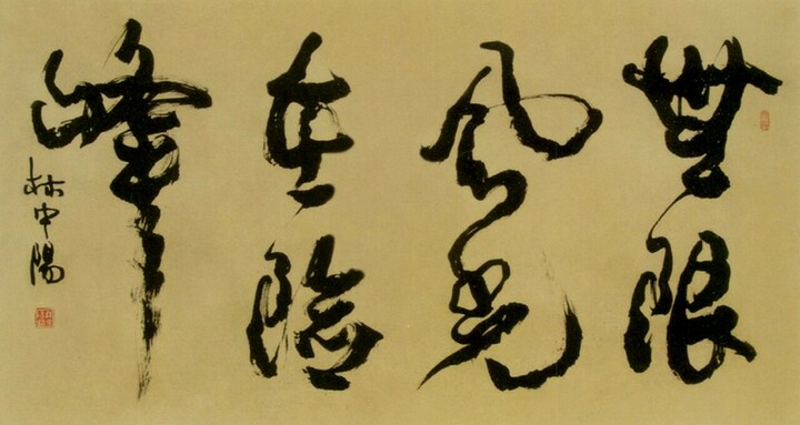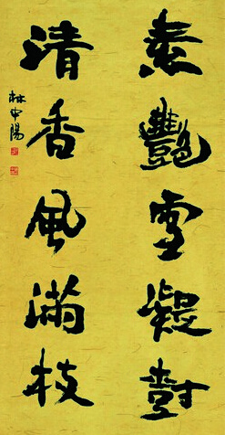 有的人說:林中陽的字,似乎缺少一點秀,少了一份精到。這是存在的事實,也自有一番道理。但我以為,論做人,當先觀其大略,書法藝術也須如此。他的作品的字里行間,洋溢著他對過去的艱難喝艱辛求索書藝的反抗。洋溢著他對生活的渴望,對人生的理解,對事業和未來的向往,始終張揚著一種不屈不撓的精神,這就是:大氣磅礴,豪氣云天。所以,他的筆下,不去刻意地雕塑細微的東西,而是放筆縱橫;不去秀媚以宜人,而是蒼茫追曠達。正如古人所言:“當其下筆風雷快,筆未到時氣咿吞”。中亦使我想到了吳昌碩的一句名言:“苦鐵書氣不畫形”。無論畫家還是書法家,確實“氣”是很重要的。有眼光的鑒賞家,先觀其氣息、氣質、氣勢、氣魄、氣度。誠然,我們亦需要“黛玉之美”的“品種”,但更需要“陽剛正大”,我們不能要求魯智深放下月牙鏟,去坐在兒女堆中吟詩填詞,或者打著鼓兒唱“春江花月夜”。林中陽的字,是激越的黃河謠,是劉歡唱出的“好漢歌”。