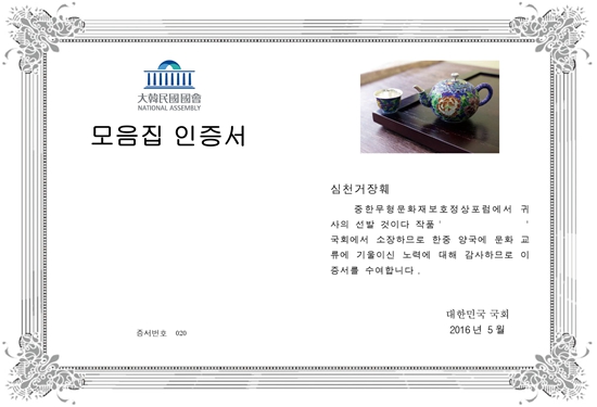華慶:對的,因此我來總結中國非遺產業的最新特點可以用以下一段話來進行描述:中國的非遺產業已初具產業規模,并在傳承老祖宗留下的核心技藝和核心內涵基礎上,正向高科技化、標準化工業化、品牌化、龍頭化、實物集成電子化和資本化不斷邁進,一個古老卻又新興的產業正在中國崛起,也歡迎與韓國非遺產業從業者交流溝通!