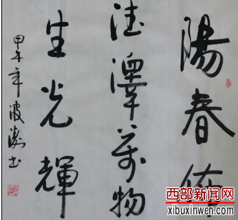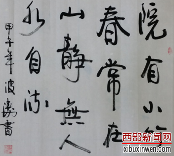 古人云,書法之美,重點在于感受“書法者情緒表達的意象”,這種意象的感受,就是一種藝術情愫的強烈緣起。 “學書在法而其妙在人,法可以人人而傳,而妙必其胸中之所讀得。”“書畫之妙,當以神會,難以形器求也”。其作品在意象方面美的巧妙,經常能引起別人的藝術共鳴。任波濤書法集各家之所長,厚重、嚴謹,飄逸、清健,他對書法線條的理解頓悟,賦予了線條全新的魅力,使他的書法展示給大家有著獨特的線條之美,其字用筆美、點劃美、意境美。他作品通篇結構,引領管帶,首尾相應,一氣呵成。波濤的書法作品的藝術之美宛若無言而有詩篇之意蘊,無動而有舞蹈之神形,無色而有繪畫的斑斕,無聲而有音樂的旋律。