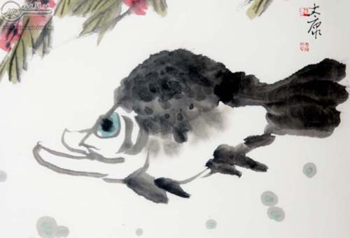 太康的畫,可謂取法乎上。他瞄準的幾位畫家是:石濤、八大、吳昌碩和齊白石,在這幾位大師的作品中你就能感受到我上面所說京劇和中國畫里面的妙處。太康學(xué)中國畫有幾個得天獨厚的條件:首先他在攻書法篆刻的過程中認真研讀了許多典籍,于文、史、哲諸方面均有了一定的修養(yǎng)。這一條十分重要,因為畫是文之極也。再是在長期的刻印實踐中,對印面之方寸天地反復(fù)謀劃,其聚散、疏密、方園、黑白之間的學(xué)問多所領(lǐng)悟,這和畫面的布局、虛實有異曲同工之妙。另外在書法的揮灑中積累了筆墨的深厚功力。這都是學(xué)習(xí)中國畫不可或缺必須具備的基本功。這里我想到吳昌碩先生在初學(xué)畫時的一段軼聞:當時,吳先生在上海,于詩文書畫已有了相當造詣。始以篆籀筆法作畫,但苦無師承,后經(jīng)人介紹,求教于任伯年,其時任已是滬上名家。見面后,任讓吳隨便畫幾筆給他看看,當看到吳落墨用筆渾厚挺撥,不禁拍案叫絕:“你將來在繪畫上一定成名!”嗣后兩人一直以師友的關(guān)系交往。吳終于跳出了任的圈子,自成一體,別具一格。穩(wěn)坐了后海派首領(lǐng)的位置。