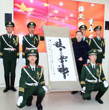 劉俊的書法《精氣神》被國旗護衛隊收藏