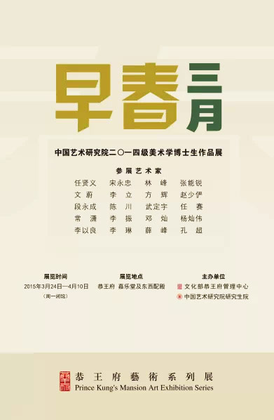 2015年3月24日至4月10日,經過精心的前期準備,由文化部恭王府管理中心與中國藝術研究院研究生院共同主辦的“早春三月——中國藝術研究院2014級博士研究生作品展”在恭王府舉行。