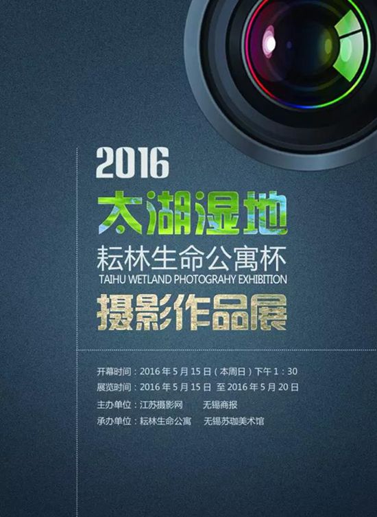 凝萬千氣象于須臾,貯旖旎風光于方寸。由江蘇攝影網、無錫商報主辦,耘林生命公寓、無錫蘇珈美術館承辦的“耘林生命公寓杯”2016太湖濕地攝影作品展將于2016年5月15日下午1:30開幕。